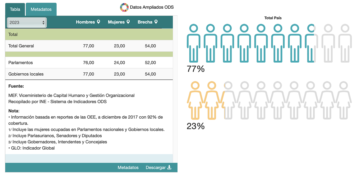 Proporción de escaños ocupados por mujeres en los parlamentos nacionales y los gobiernos locales en el sector público