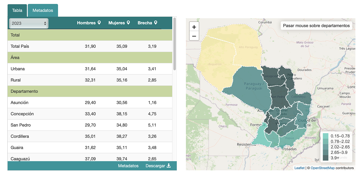 Dentro del Instituto Nacional de Estadística (INE) de Paraguay, se proporciona varios datos específicos desagregados por sexo que pueden ayudar a entender la brecha en cómo el cambio climático afecta a hombres y mujeres.