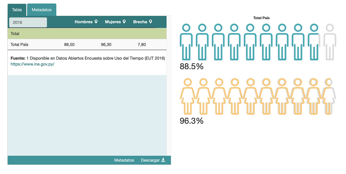 Datos sobre el tiempo dedicado al trabajo remunerado y no remunerado, que pueden mostrar cómo las responsabilidades de cuidado y las tareas domésticas se ven afectadas por el cambio climático, impactando de manera diferente a hombres y mujeres.